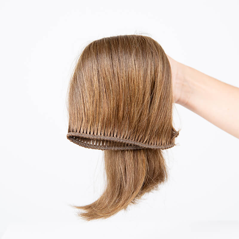 All our wefts are custom made to order creating the most seamless match. Our method allows the weft to sit flat to your head. Using cotton as the main back bone to the track this adds extra strength in the track for the extensions to be sewn onto.