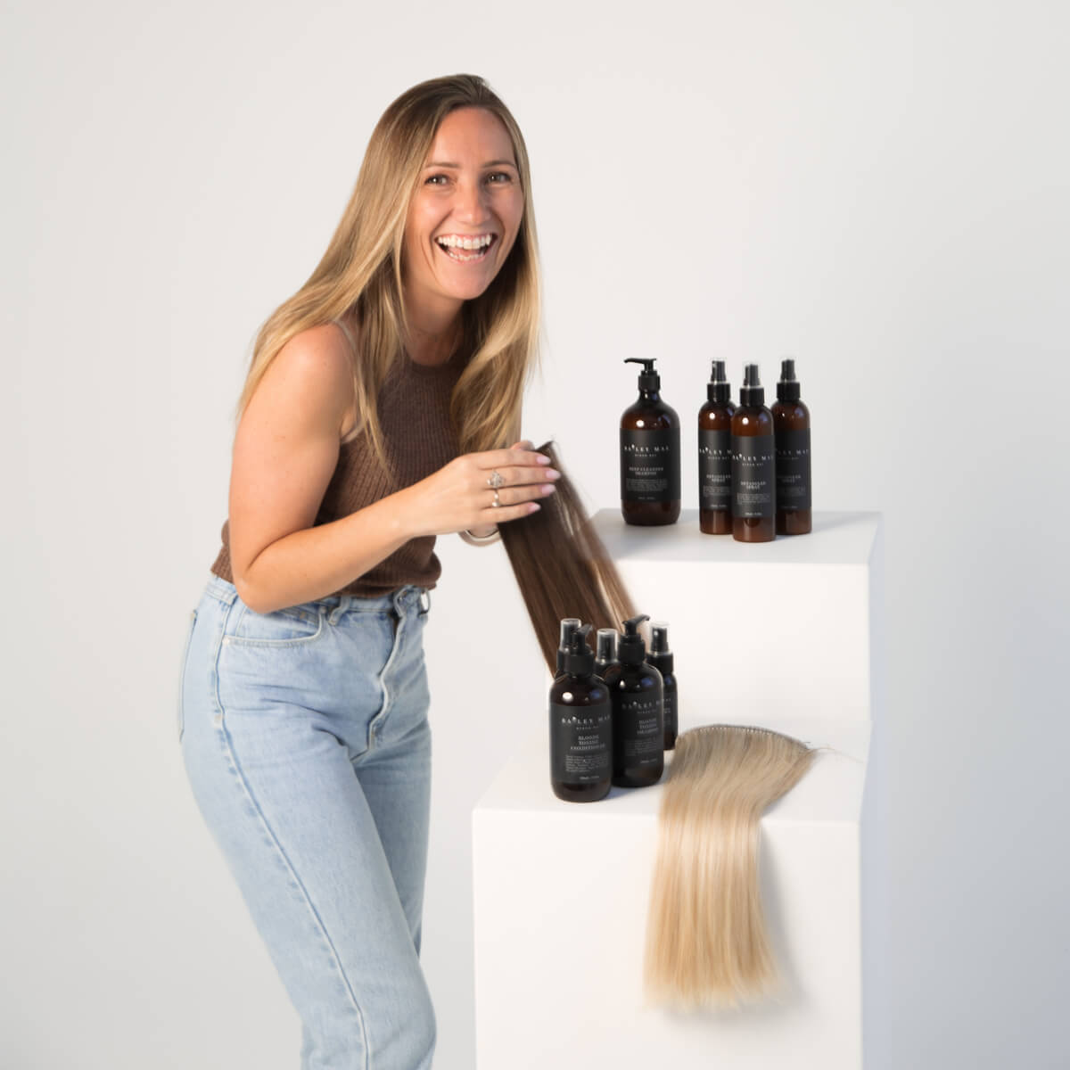 From my base in Byron Bay, I combine over a decade of salon expertise with a love for design to create something that transcends extensions — hair that feels like it has always belonged to you.
